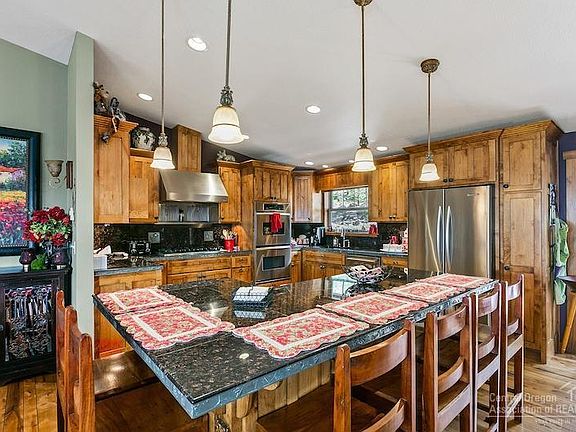 Amazing home/vacation home is set in a 9.06 ac peaceful setting with views of nine Cascade peaks. 3400 sqft home, 5 BR, 5 Bath, Great Rm, Family Rm, Large Master/in-law suite. This wonderful home also offers a large, second, private master bedroom suite and/or apartment with a deck that can be locked off from the main home. Gourmet kitchen w/ SS appliances, knotty alder cabinets, granite counters, Viking 6 burner gas cook top w/ hood, wine cooler, and two pantries. Three zone heating, AC, two H20 heaters w/ lifetime warranty, new windows, major upgrades & addition in '07 which included, a new roof, siding, heat pump/AC, windows, & 3 car garage. This home also offers 5 decks, a gazebo, hot tub, RV pad w/ 30 amp & sewer, Bocce & Boule courts. This owner-occupied, income producing, vacation rental offers the perfect oasis close to the BLM, Redmond, Bend, lakes, golf, and mountains galore!