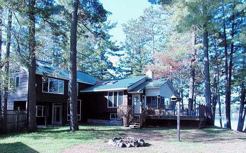 CONTEMPORARY HOME ON BRANTINGHAM LAKE Paradise Fulfilled! Here is a chance to buy your own private water front compound with 200? of prime Brantingham Lake waterfront and over a half acre of wooded property with no stairs to get down to the lake. The home offers over 1900SF living space, plus finished basement. There is a gourmet kitchen with commercial appliances, spiral staircase to cavernous master bedroom suite, ultra modern fixtures with master bath of walk-in glass enclosed shower with stone wall behind, bedroom fireplace, skylights in cathedral ceiling, AND sunken living room with fireplace, two family rooms; one with wet bar, 2.5 baths, double stall garage, hot tub AND a guest house attached to a boathouse. Don?t miss this once in a lifetime opportunity to own this. prime property! Call Roger for more detail.