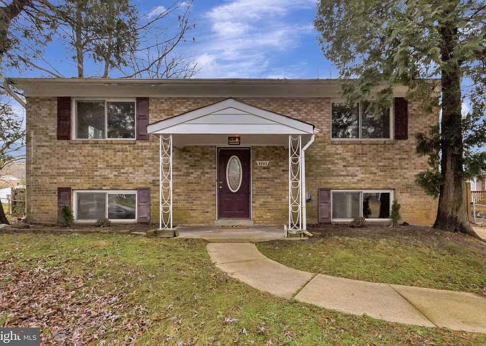 Welcome home to this beautiful brick front split foyer home featuring 4 bedrooms and 2 bathrooms on a nearly quarter acre lot! Take the winding walkway to the covered front porch and enjoy the spaciousness of your front lawn, with majestic trees on either side of the house. Walk up the foyer steps and into the bright and light living room featuring fresh paint and new carpeting throughout! The dining room features a 5 light chandelier and chain railing, with a side entrance leading into the kitchen. The kitchen features plenty of counter and cabinet space and a new stainless steel above range hood over the new gas stove. Also features a a double sink with an additional side detachable faucet and window view. Easy access to the second entryway, with steps leading to the backyard. The bedrooms are all spacious and there are two bedrooms and a bath on the main floor and two bedrooms and a bath on the lower level. The walk out basement is perfect for a rec room or additional living space! Entertain on the covered patio overlooking the large fully fenced in yard featuring a separate storage shed - a great place to store your tools. Enjoy the newly installed A/C unit in your home! Excellent location, close to Rt 301, I495, Rt 5 and metro and close to multiple shopping and dining destinations. You do not want to miss this one!
