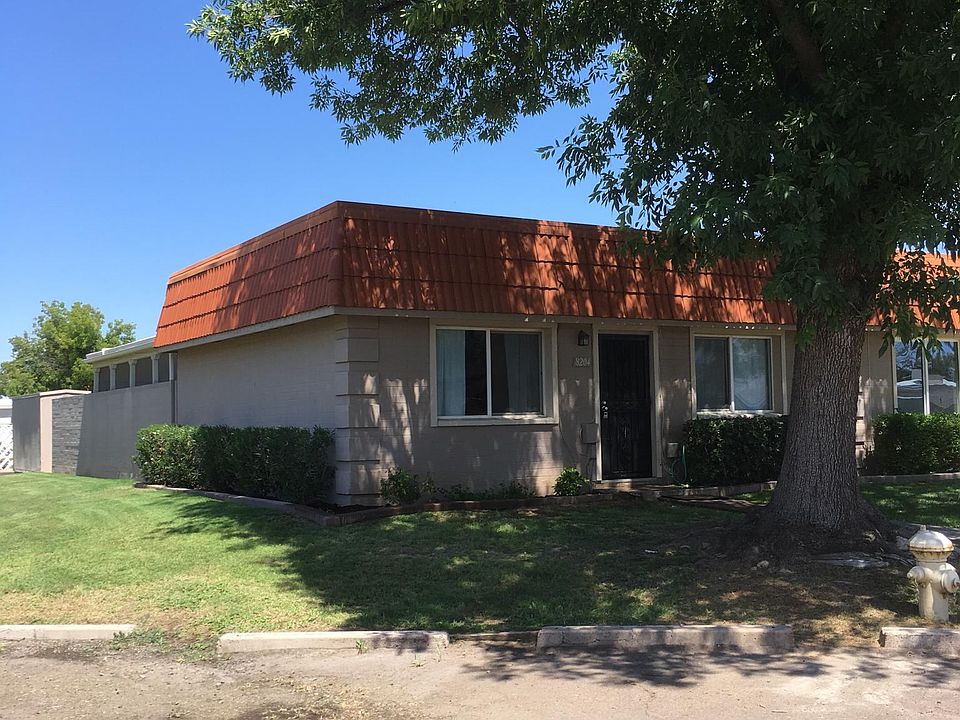 Large 2 bedroom condominium - single level, ground floor, end unit with split floor plan. Beautiful kitchen with stainless appliances, granite countertops and plenty of space. Both bedrooms are large and carpeted. Master bath features double sinks and walk in shower. Two walk in closets in master bedroom. Tile floor in main living areas. Washer and dryer included. Beautiful Covered patio with skylights. Unit has 2 covered parking spaces immediately behind condo as well as a private storage shed. Community has beautiful pool. This condo is in a great location in Scottsdale the at end of a dead end street. Rent includes water. Tenant to pay own electric (SRP), cable, internet, and Scottsdale 1.75% rent tax. One Dog may be acceptable based on breed. No aggressive breeds. Contact Owner to view. E-mail or at Owner is licensed real estate broker. Owner pays water, sewer, trash . Use Zillow application. No application accepted without viewing the condominium.