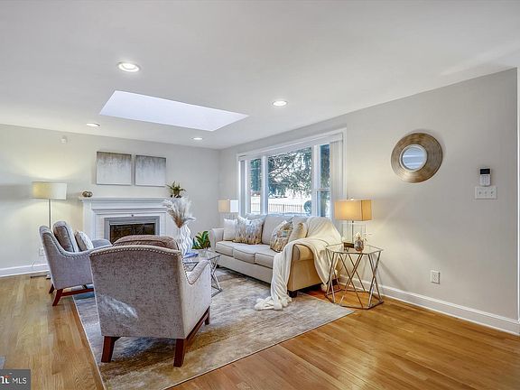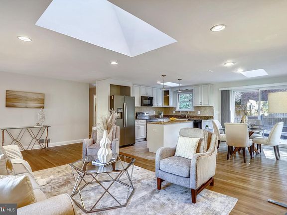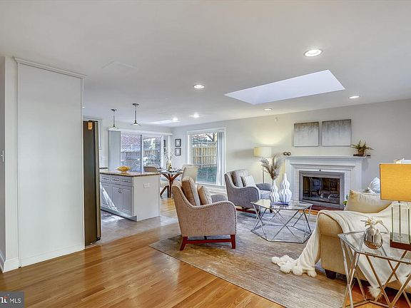 This Impressive Renovated Rambler in Chevy Chase has been filled with beautiful features such as skylights, refinished floors, an open floor plan, and fireplace, this is a perfect in-home office or a home with two private living levels. Step into the heart of the home in the open concept living room that has a large skylight centered over the room and a large window, but the fireplace is the true gem of the area. Overhead recessed lighting, multiple windows, and a large sliding glass door to the back deck bring in natural lighting in the dining area. The renovated kitchen has ceiling height white cabinets, newer appliances, skylight, backsplash, and an island for meal prep with storage. The primary suite is expansive with sitting room, dual skylights, custom closet, and updated primary bath, with a custom tiled shower and vanity sink. The original three bedrooms were turned into two, to create a larger owner's suite: The second bedroom on this level is currently set up as an office with lots of built-ins and a desk. Head to the lower level of the home to find a second kitchen, two bedrooms, and a full bath on the lower level with two outside entrances. Perfect for an au pair or in-law suite. Also, great potential for an Airbnb setup: The entire lower level includes recessed lighting, hardwood flooring. The kitchen has been outfitted with a sink, dishwasher refrigerator, microwave, and stove with a half wall separating the additional dining area. The private bedroom has hardwood flooring, recessed lighting, and large closet. There is a modern bathroom that has been updated with a tiled shower. An additional room on this level could have multiple uses, an ideal workout room, office, playroom. Enjoy the two-car garage and off-street parking for at least 6 cars. Large, fenced lot, surrounded by parkland on one side also has a large shed and deck. This special and unique property is only steps to shopping and Rock Creek Park.