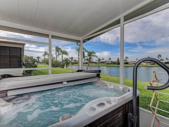 JUST LISTED TURNKEY - $64,900 This Turnkey home features: 1. 1,550 square feet of living space including the rear sunroom plus a rear lanai 9'x12' and a side lanai 21'x10' for a total of 1868 sq. ft. of space. That's your wow factor, it's big!! PLUS, there is a patio that gives more entertaining space. 2. The Rear screened lanai has a hot tub that stays with the home!!! The hot tub is a 5-year old Cal Spa 7 person with waterfall, therapy jets and more. 3. New Bamboo Floors that are stunning 4. New Thermo-pane windows that "tip out" for easy cleaning 5. New counter tops in the kitchen that are beautiful. The kitchen floor is a 100% waterproof NuCore Laminate. Stainless appliances are only 2 years old and the cabinets are a bright white. 6. The master bath has a tiled shower that is very nice. the double bowl vanity is what you want. 7. Large guest bedroom for your family when they visit. 8. The master suite is extremely large with multiple walk-in closets. 9. Near harmony Hall and Pool where most events are held 10. Gorgeous views of Long Lake ACT FAST & CALL TODAY!! Don't forget to ask about the FINANCING available on this home. Colony Cove is an age qualified (55+) five-star resort community of manufactured / mobile homes. The "Cove" boasts 5 clubhouses, 5 heated pools, a riverfront pavilion and private fishing pier, a private marina, a fenced dog park (very pet friendly), tennis, shuffleboard, new pickleball courts, 2 new fitness rooms, 24 hour patrol, clubs for every interest, and much more. There are daily planned activities throughout the park. Bottom line, if you get bored here, it's your own fault!! The lot rent in Colony Cove is based on the homes' location. While the monthly rent may not be the lowest around, it's by far the best value for the money. Not only does the monthly rent cover all of the amenities of the community listed above, it also covers almost all other monthly expenses such as; water, sewer, trash pickup, all property taxes, lawn maintenance. . .pretty much every monthly expense except electricity and internet. The current lot rent on this home is estimated at $1041.13 per month. All listing information given to us is considered appropriate and reliable but always recommend Home Inspections by independent companies who have a background and thorough understanding of manufactured homes. We cannot guarantee the accuracy of information given to us or the condition of the home. Lot rents are determined by the community office.