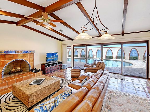 - Interior Features: Cathedral Ceiling(s), Ceiling Fans(s), High Ceiling(s), Master Bedroom Downstairs, Split Bedroom, Crown Molding, Walk-In Closet(s), Window Treatments, Solid Surface Counters, Eating Space In Kitchen, Wet Bar, Coffered Ceiling(s)