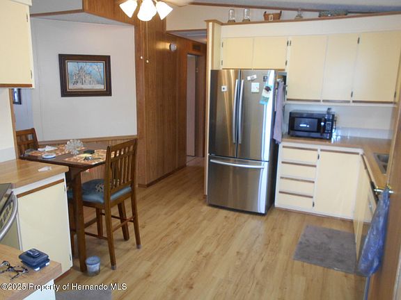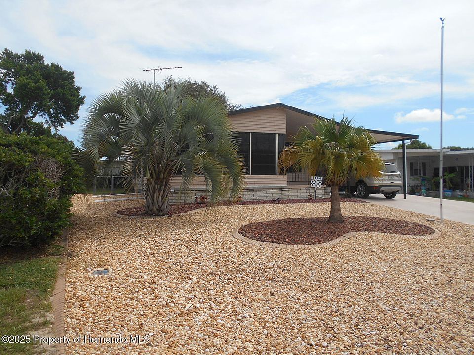 Welcome home friends! This home is a hop skip and a jump to the pool and tee off. This home features 2-bedroom 2-bathroom is a must see! The home has a lot of upgrades. New guest bathroom, vinyl flooring, new dishwasher, vinyl screens in the Florida room are new. The siding on the home is freshly painted. Leaf guard was put in. The skirting is new. The trim on the outside has been painted. Has antenna for all your fav shows.catherdrile ceilings outside laundry zero scape in the front and fenced yard and grass in the back. It's a must see. bring all offers. Motivated seller. Come down and enjoy the sun in a 55+ community where you own your own land.