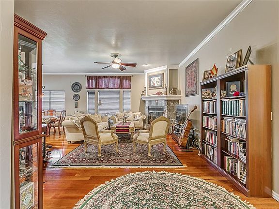 Amazing sunset views! This lovely home features a single level open floor plan ready to make it your own! Fabulous Lake view from the pool side. Formal entry leading into spacious living and dining room. Living room offers a cozy fireplace, tons of natural light. Kitchen with stainless appliances, granite counter tops with wood floors into living & dining. Crown molding through out. Make this home must see!!