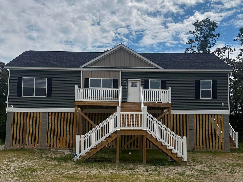 Check out this raised open floor plan home in Longs SC! This beautiful brand new construction allows for seamless flow between the kitchen, living room, and dining area, perfect for entertaining guests or relaxing with the family. 3 Bedrooms and 2 bathrooms with a work area nook! The spacious bedrooms offer plenty of natural light and storage space. Additionally, the energy - efficient design helps reduce utility costs. With its stylish design and functional layout, this home is the perfect blend of comfort and design. Located on a spacious 1.29 acre lot with ease of access to Highway 22, highway 31, and all that the grand strand has to offer while being just far enough away to enjoy the country comforts. Photos are of identical model and renderings. Actual home finishes may vary.