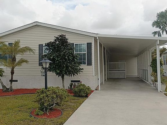 Welcome to 8204 South St, Boca Raton, FL—an exceptional opportunity in the highly desirable community of West Lakes. This spacious waterfront home offers 3 full bedrooms & 2 baths. Step inside to discover a stunning kitchen featuring custom cabinetry & dazzling quartz crystal counter-tops, ideal for culinary enthusiasts. The open layout is adorned with Ceramic tile flooring throughout, creating a seamless flow from room to room. Enjoy serene canal views from your enclosed patio—an inviting space for morning coffee or evening relaxation. The master suite boast a huge Jacuzzi tub & a separate shower for ultimate relaxation. Large carport with an attached storage shed. The front-loading washer & dryer are located inside the coach. Built in 2005. Professionally cleaned from top to bottom!