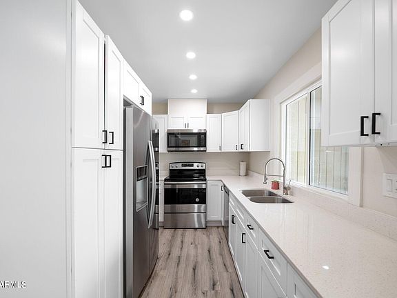 10k Price Drop! Nestled in the desirable 85250 zip, this four bedroom, 2.5 bath, two level beauty is a must see. Home features 2,000 sq ft of living space, vinyl wood plank flooring, white cabinetry, stainless steel appliances, dual pane windows and so much more! Outside features a private courtyard w/ covered patio, pavers, turf and two community pools nearby.