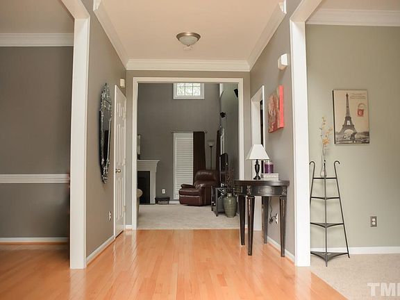 Stately BRICK front home with great curb appeal on a CUL DE SAC. Open and spacious floor plan with hardwood floors in the kitchen, dining and entry way. Many upgrades including NEW CARPET, toilets, fresh paint, brushed nickel lights and ceiling fan. The best lot in Riverside with a large wooded and FENCED backyard offering plenty of privacy with a DECK for entertaining. Easy access to I540 and a short walk to the community clubhouse with playground, tennis and POOL.