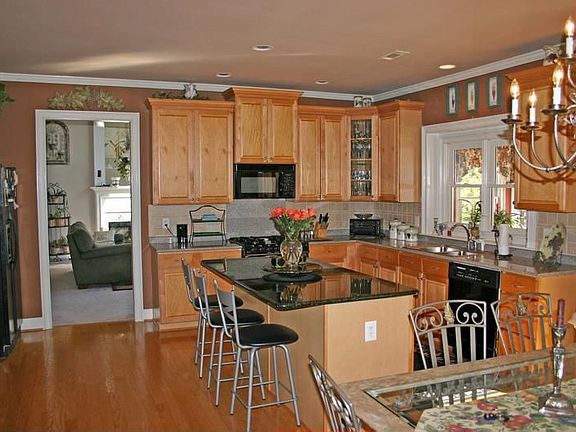- Kitchen Features: Breakfast Bar, Cabinets Stain, Pantry, View to Family Room, Stone Counters, Kitchen Island