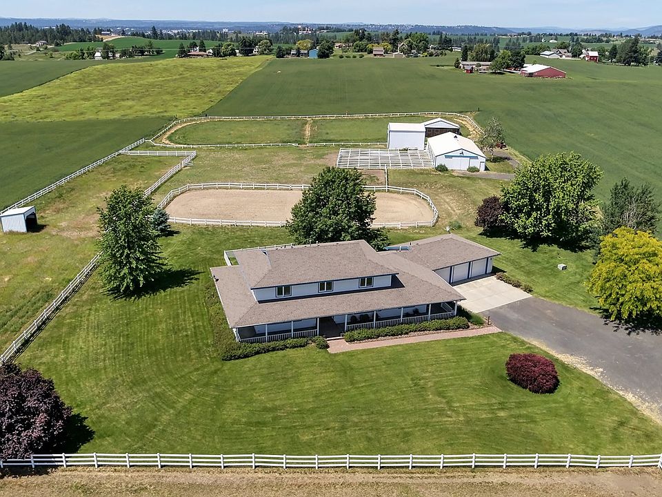 Location is 15 min to downtown spokane, 10 min to Spokane Valley and 10 min to North Spokane. Orchard Only 22 miles to Mount Spokane Ski Resort! This custom home is well maintained and strategically set on a knoll to take in the panoramic views of Mount Spokane and surrounding Valley! There's no lack of storage throughout this home and the lighting is well through out with wall light valances throughout.. Large main bedroom with 5 piece en-suite, updated shower, and walk in closet. Amazing entertaining home with large open concept kitchen & dining area, a cozy family room, a formal dining and living room areas with gas fire place, den and 3/4 bathroom are all on the main floor.. Large patio off back home with spa and wrap around porch. 3 car garage, Equestrian area consists of a 30x60 barn equiped with power and water, seven stalls, 5 with turn outs, a feed staging area, tack room and cross tie wash/groom area. The 3 pasures are fenced, have loafing sheds and water. Riding areana and another large area used for driving horses could be another pasture. Property is fenced and Cross Fenced with white vynle fening. Other structures include a large 24x30 and 20 foot tall shed used for shavings with room for RV.and another equipment shed 30x12.