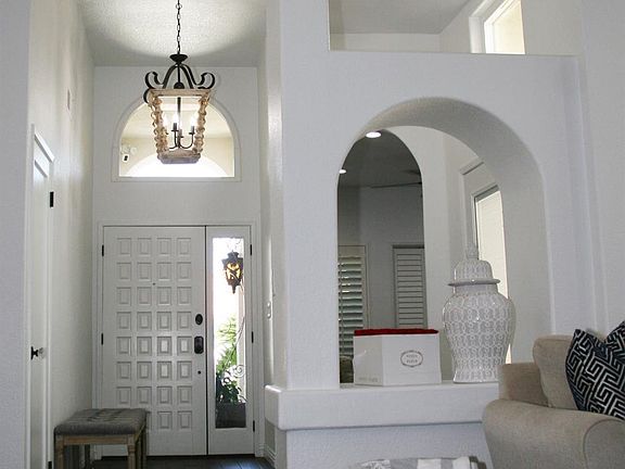Gorgeous! Pulling up tp this 3 bedroom 2 bath desirable move in ready Vineyards home with its green perfect landscape. Entering the Grand front door into the entry way to the open floor plan noticing the huge Vaulted ceiling, updated lighting and top of the line flooring. Stepping in further to the Captivating open floor plan. To the right is a gourmet cooks dream kitchen featuring stainless steel kitchen-aid appliances, Quartz counter tops and custom Melamine quiet closing cabinets off the kitchen is the indoor laundry room w/ built in cabinets for lots of storage. The hall bathroom is exquisite with spa jetted tub granite counter top stunning chandelier. Master bedroom w/ french doors elegant bathroom with 2 closets featuring built in organization, low maintenance backyard with an in-ground spa situated perfectly for outside entertaining or as a retreat. To much about this home to list a true must see! Come preview today and pick up a flyer for further description of this lovely home