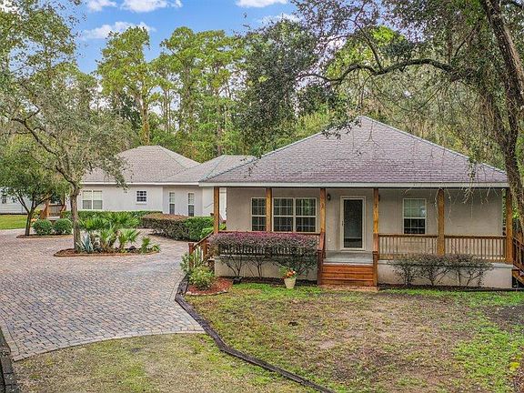 This is the true definition of multi-generational living. 3 custom-built dwellings are the center piece of this nearly 2-acre private and tranquil lot. There are 2 main residences at each end. One is 1,444 sq ft and offers 3 bedrooms and 2.5 baths and the other is 1,296 sq ft and offers 3 bedrooms and 2 full baths. Each residence has a full kitchen, breakfast area, living room and laundry room. They have been nicely appointed with granite in the kitchens, tile flooring in wet areas and updated carpet throughout. The center unit is a blank canvass with 476 sq ft which includes a kitchenette and a full bath. Imagine your dream game room, movie room or use this great space as a studio apartment.