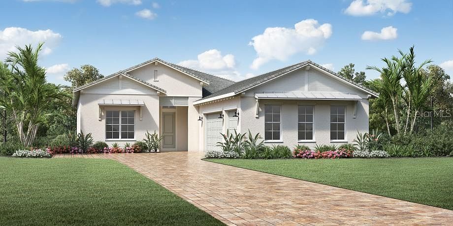 Under Construction. Quick Move In! Contemporary elegance meets modern luxury. This stunning home offers a welcoming foyer that reveals views of the spacious great room and dining room, both with coffered ceiling, and the desired lanai beyond. The well-designed gourmet kitchen is equipped with large center island with breakfast bar, plenty of counter and cabinet space, and ample walk-in pantry. The gorgeous primary bedroom suite is accented by a coffered ceiling, sizable walk-in closet, and deluxe primary bath with dual-sink vanity, luxe shower, linen storage, and private water closet. Secondary bedrooms feature roomy closets and private full baths.