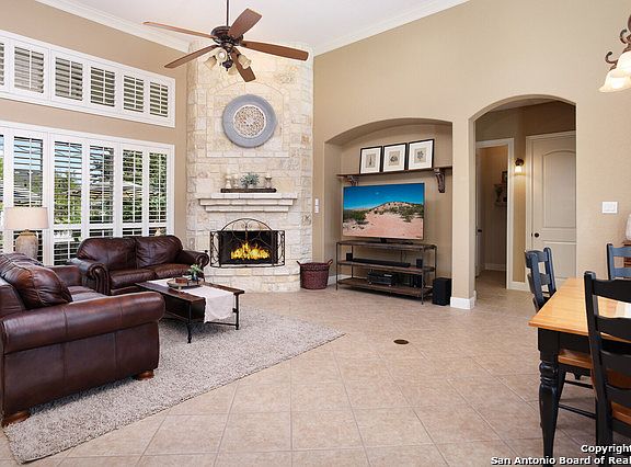 Beautiful contemporary hill country home w/4 beds, 3.5 baths, 3 car garage and pool/spa in highly coveted Deer Meadows Estates! Honduran Pine floors greet you in the entry, study, primary suite, and game rooms. Unique design elements begin with the stunning curb appeal and carry into every room of the home. Entertain in the large family room with gas fireplace, polywood plantation shutters and high ceilings open to the kitchen and dining area. The chef's kitchen is equipped with custom wood cabinetry, granite countertops, new gas cooktop, stainless steel appliances and designer tile backsplash. Downstairs are the two secondary bedrooms with jack & jill bath and the fabulous primary suite. The spa-like ensuite features double vanities, garden tub, separate tiled walk-in shower and large walk-in closet w/custom built-ins. Conveniently located close to the Fair Oaks Country Club and nestled at the end of a cul-de-sac backing up to a greenbelt, this home offers privacy and a perfect location! Enjoy those Texas summer nights on the covered back patio overlooking the sparking pool and spa or relax by the newly built fire pit area. Over $60k in upgrades (new roof, new HVAC's, new water heaters & more!) see seller upgrade sheet for all upgrades. Exemplary rated Boerne ISD. Welcome Home!