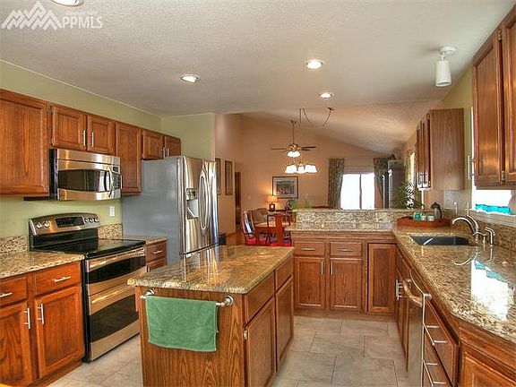 Immaculate Rancher in Fairfax. Open floor plan. Academy School District 20. Nice quiet street. Brand New Roof and Water Heater. Furnace and A/C replaced in 2014. Granite Counter Tops in Kitchen and bath. Stainless Steel Appliances, Breakfast Nook and Bar. Updated Master Bath with Double Vanity and a Great Walk-in Closet. Vaulted ceilings, Skylight, Beautiful Gas Fire Place, Hardwood Floors in main area. And there's more... Extra storage space in garage. Finished Basement with Bamboo Cork Flooring, Bedroom, Bath, Office and Spacious Laundry area with Refrigerator and Cabinet Space. Nice Patio with Retractable Awning, Fenced Yard and Sprinkler System. A Must See!