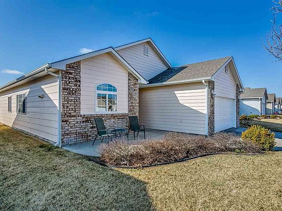 Looking for a beautiful low maintenance patio home in west Wichita? Look no further! This spacious, well-maintained patio home has almost 1600 sq ft all on one level with a wide open, spacious floor plan. Three bedrooms, two full baths and an awesome oversized two car garage. This one owner home is immaculate inside and out! 100% ready for you to move in and just enjoy! Front and back patios! Owners customized and upgraded a majority of features and amenities. Beautiful arched kitchen window. Loads of natural light throughout the home, High energy 93% AFUE Efficient gas furnace, Aprilaire brand high efficiency air cleaner, Aprilaire humidifier, Westar watt saver thermostat, 13.00 SEER A/C, R-38 ceiling insulation, Rinnai R53i hot water heater on demand, all lighting is CFL or LED, South facing casement windows are "Pella", "Energy Star" and Advanced Low-E insulating double-pane glass argon filled, and energy saving washer and dryer remain. The Kitchen has been professionally custom designed including: gas stove, slide out shelves where appropriate, 2 Lazy Susans & custom slide out linen storage facing the dining area. All kitchen appliances remain. Beautiful woodwork, abundance of workspace, lovely countertops and tile backsplash, and a built-in china cabinet. Main floor laundry leads to garage. Master bedroom has a nice backyard view with adjoining large master bath, including double vanity, good sized shower and a roomy walk-in closet too. The master closet doubles as a reinforced concrete storm shelter. 2nd and 3rd main floor bedrooms can also be used as office, hobby or exercise rooms. Other upgrades include 36" wide doors, easy to operate lever handles, tile floors, highest quality laminate flooring available when built, wired for TV and computer cable plus a high definition TV antenna for all over-the-air broad casts in Wichita - NO CHARGE for this viewing. The covered patio has been professionally upgraded to a porch. The floor incorporates a "Concrete Technology Inc. Acrylistain System" surface finished in 2015. The Railing and Post system is made of a strong composite core with a permanent finish that does not need painting. Relaxing here will be your favorite pastime. Beautiful views of nicely manicured yard. HOA maintains lawn, watering, fertilization, snow removal and trash (irrigation well & sprinkler system is owned by HOA). Hurry! These homes don't last! Schedule Your Showing Today!