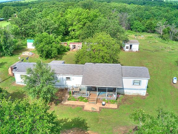 10 acres mol with stocked pond - partially wooded - located not far from Stroud lake - 3 bed 2 bath mobile home plus storage buildings, storm cellar with well and septic. Come take a look - mobile being sold as is where is.