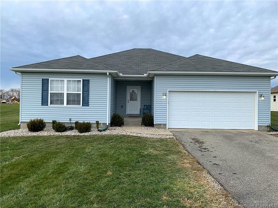 Welcome home to this beautiful, fully-finished, functionally-designed home located in a quiet neighborhood just out of growing downtown Charlestown. Right off the entry is the spacious master suite, fully equipped with two closets, a vanity, shower, and private water closet. Spread out to the living room, complete with vaulted ceilings and beautiful crown molding. Wake up and enjoy the natural lighting through the kitchen window with a good cup of joe in hand from your tastefully decorated coffee bar. You will love the gorgeous, newly laid flooring extending through the home!! Two extra bedrooms perfect for children or guests. Not to mention the awesome laundry room, two car garage, and an almost one acre lot! So much potential you will have to see it to believe it!!