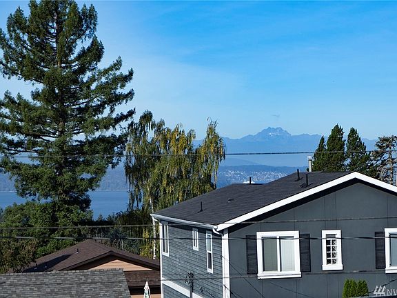 Watch the sun set over the Sound & ferries dock from 2 stories of this Gatewood home! Sits high above the street. The light-filled living & dining rooms inc. oak floors & new paint. Dining area seats 8. Main floor bedroom, full updated bath & bright remodeled kitchen. Striking staircase leads up to 3 bdrms., 3/4 bath & roughed in plumbing & permitted plans for master bath. Downstairs: large family room, 5th bedroom & laundry. Covered front view porch. Backyard deck. Large 2 car garage off alley.