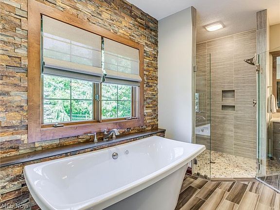 Captivating Home in the Heart of Jackson Township! Located in the desirable Carrington allotment this is a true treasure. Professionally decorated to accentuate the outstanding features like 18ft ceilings in Great Room with stunning fireplace and windows, vaulted ceiling in Office that has an electric fireplace or beamed ceilings in Dining Room and 1st floor Master Bedroom. Feature walls throughout the main floor give the feeling of total luxury. Large Kitchen has access to the upper composite deck for outdoor dining off of the eat in area. Master Bath boasts a gorgeous tile shower, jetted tub, separate vanities and huge walk in closet. Bedrooms 2 & 3 share a Jack & Jill bath and Bedroom 4 has private Bath. Lower level Rec room in walk out basement has wet bar, full bath and screened porch leading to a Backyard Paradise complete with firepit, hot tub and peaceful waterfall. In the center of a cul de sac this is a private oasis!