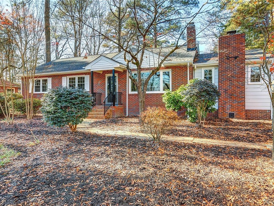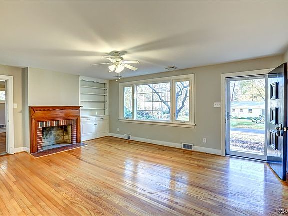 This revitalized brick rancher provides easy one-level living and the modern amenities you will enjoy in your next home. The renovated kitchen has new cabinets and drawers, beautiful quartz countertops, undermount deep-tub stainless steel sink with disposal, white tile backsplash, new dishwasher, oven and stove with stainless steel stove hood, under-cabinet counter lighting, stainless refrigerator and adjoining eat-in area. Formal dining room with chair rail and chandelier is adjacent to kitchen. The master bedroom has a wood floor, ceiling fan with light, and its own private master bathroom. The two additional bedrooms have wood floors and ceiling fans with lights. A large living room has a wood floor, built-in cabinets and bookshelves, wood burning brick fireplace with attractive wood mantel, bay window, and ceiling fan with light. The even larger family room has its own wood burning fireplace and overhead lighting. Great laundry room has a folding counter with cabinets beneath, shelving system, overhead lighting, utility sink, washer and dryer. A wood privacy fence fully encloses the big backyard which features a detached storage shed, patio, and fire pit. 2023 installations include: brand new dimensional shingled roof, gutters, and downspouts; new front stoop, railings, and storm door; new 40 gallon electric water heater; new ceiling fans with lights. Other features include a paved driveway, mature landscaping, replacement windows, coat closet, pull-down attic, and a full hall bathroom with tub and shower. This home is within walking distance to Chamberlayne Elementary School, Henrico County's North Park Library, and Three Lakes Park and Nature Center. And it's just a short drive or bike ride to Virginia Crossings Shopping Center, restaurants, Lewis Ginter Botanical Gardens, Belmont and Bryan Parks, golf courses, and interestate access points. Such a solid home in a truly convenient location. Make your appointment today to see this home when showings begin on Thursday, January 18th!
