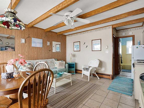 Unit available at the Angel Condominiums in Wildwood Crest. This cozy & economical 1 bedroom, 1 bath condo has open living room accented with hand painted beams, dining area and kitchen with newer refrigerator. Nice picture window lets in lots of light, but the landscaping provides privacy. Full tiled bathroom, bedroom with ceiling fan and easy to care for tile floors throughout. Small association with only 4 units. Easy walk to the free beach or the bay plus there is a roof top deck to enjoy some sun or to watch the Friday night fireworks display in season. This is a year round condo and would be a great place to escape to anytime of the year. Lots of activities for everyone to enjoy. Rental potential $700 a week in season, but the owners currently do not rent. New, quality sleeper sofa in the living room to accommodate extra guests. Low condo fee of $110 per month includes hot and cold water, sewer, lawn care, common electric, flood insurance and fire and liability insurance. Separate meters for gas and electric. Priced below assessment, low taxes of $1830 a year. Fenced in front yard with table to sit and enjoy the summer sun or outdoor dining. Common grilling area in the rear. Heater room in rear of building and storage area on the 2nd floor next to the roof top deck. 3 parking space for 4 units, so it is first come first serve, however in this quiet residential neighborhood and parking is not usually a problem. Come take a look and make this your shore home! Get ready for a summer of fun at the Free Wildwood Beaches and Boardwalk and make lasting memories.