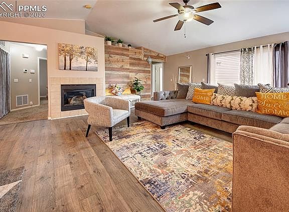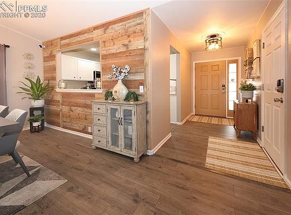 Take a look at this gem! Immaculately maintained home, with lots of great decorator details, including barn-wood walls and wood laminate flooring. Stainless steel appliances, nice bright kitchen and opens to dining area. Great back yard with views. Close to everything, shopping, Ft. Carson, park. Two identical bedrooms with a full bath on one side, large Master bedroom with views to the mountains.