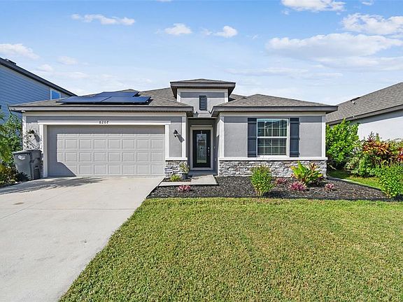 Welcome to your Florida dream home! This stunning 4-bedroom, 3-bath residence offers 2,121 sq. ft. of beautifully designed living space, perfectly blending comfort and style. Step inside to find an open-concept floor plan with bright natural light, high ceilings, and modern finishes throughout. The spacious kitchen is a true centerpiece, featuring stainless steel appliances, A smart Fridge, along with a water softener and reverse osmosis system. The adjoining dining and living areas flow seamlessly, creating a welcoming space for gatherings. The primary suite is a private retreat with a walk-in closet and spa-like en-suite bath, complete with dual vanities and a soaking tub. Three additional bedrooms provide plenty of flexibility for family, guests, or a home office, including one that is handicap accessible. Enjoy Florida’s sunshine in your outdoor living areas, complete with a fenced yard, perfect for weekend barbecues or relaxing evenings. This home also comes equipped with energy-efficient Solar Panels, a two-car garage, and ample storage. The community has an onsite playground, clubhouse and Heated pool, and is in a prime location close to shopping, dining, top-rated schools, and beautiful beaches. This home truly has it all.