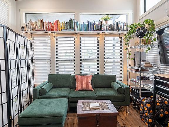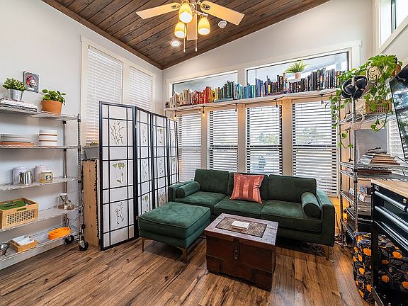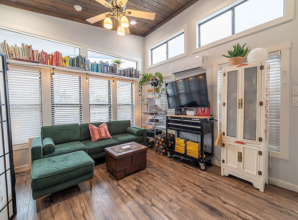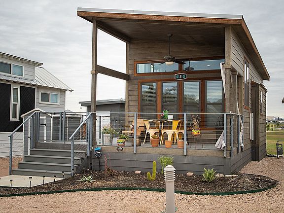 Looking for a cozy home that doesn't compromise on comfort? This 399 sq ft Casa de Canto Tiny Home is the perfect fit for a small family. With a size of 12'7" wide by 35'8" long, this home doesn't lack in features. Step inside the glass door entryway and into the open-plan living area. The kitchen is equipped with a 17 cu. ft. refrigerator/freezer, 30" range, dishwasher, and combo washer/dryer - everything you need for easy and efficient living. This modest living room is comfortable, with enough space for a table + chairs, sofa, and a TV. The vaulted ceilings make it hard to believe this is actually a tiny home! The downstairs bedroom is sized for a queen-sized bed and two side tables, making it a comfortable and functional space to sleep and relax. The upstairs loft fits a king-sized bed, dresser, and TV. The bathroom is equipped with a 20-gallon electric water heater, ensuring a constant supply of hot water. One of the best features of this home is the fully covered front deck, perfect for enjoying the beautiful outdoors in any weather. Conduit is also ready for cable and internet, making staying connected easy. With insulation values of R-22 for the roof, R-11 for the floors, and R-13 for the walls, you can be sure that this home is energy-efficient and will keep you comfortable all year round. The home comes turnkey, with all appliances and hardware included, so all you need to bring is your furniture. Along with the appliances, the house will come with a memory foam king mattress and a modern dresser in the loft. This highly sought after Casa de Canto model is located on the “Founders Side” of Village Farm Community, within walking distance of the community’s pool, hot tub, and grilling amenities. This home has private parking and an additional mini storage unit add-on to the back of the home.  This Casa de Canto is also perfectly located within Austin! This home is 12 minutes from the Austin-Bergstrom Airport, 8 miles from Down Town, 15 minutes from the Domain and minutes away from the Samsung and Tesla Factories. Community Expectations:  Lot Rent- $750/ Month. Includes- Valet Trash, Valet Recycling, Cable, Internet and Landscaping.  Accepting Cash or Pre-Approved Offers Only.  Owner financing and rent-to-own options NOT available. Serious Inquiries Only.