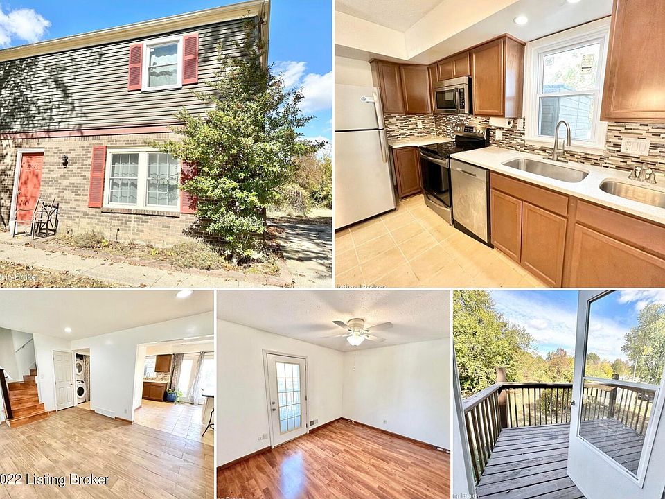 Modern, Updated Two Bedroom Townhome Conveniently Located Off The Gene Snyder At Beulah Church Rd. Inside You'll Love The Open Layout With The Living Room, Kitchen & Dining Area/Office All Flowing Together On Main Floor. Tile Floors, New Kitchen Cabinets, Quartz Counters, Stainless Steel Appliances & Washer/Dryer Can Remain! Islands May Remain Too. Upstairs Has Two Huge Bedrooms & Full Bath. One Bedroom Has Private Balcony Access. Great Closet Space + Attic Storage! EZ Condo Living With A Monthly Maintenance Fee Of 184/MO That Covers Mowing, Water & Trash. Freshly Paved Street & Private Driveway (Driveway Is On The Right Of The Building & This Unit Has The Right Hand Driveway). Big Back Yard With A Peaceful Wooded Backdrop. Updated Roof & Heat & Air! Very Cute!