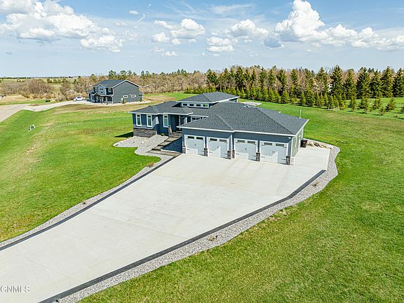 Experience luxury living in this CUSTOM-built home nestled on over 1.5 acres of peaceful countryside in Bismarck, ND. With over 4,400 sq. ft. of living space, this property boasts TOP-OF-THE-LINE finishes and amenities throughout. The OPEN-concept design features a spacious living room with GRAND ceilings and a cozy fireplace, a gourmet kitchen with CAFE Appliances plus pantry area, and a generous dining room. Just outside of the dining room you'll notice a massive MAINTENANCE-FREE covered deck surrounded by beautiful landscaping including tree rows, rock gardens, and custom concrete & curbing. Back inside, the main floor features TWO-PRIMARY SUITES and MAIN FLOOR laundry. The main primary en-suite is a TRUE retreat with a CUSTOM TILED shower, luxury whirlpool tub, and spacious wardrobe area. Now back to the main level, ANOTHER primary suite, with an additional en-suite and large closet. Moving downstairs you'll notice a FULLY FINISHED basement that includes a family room, wet bar, TWO additional and SPACIOUS rooms, and finally.... A THEATRE ROOM with all theatre room equipment (projector, screen, sound system) INCLUDED! Don't forget the FIVE car HEATED garage with EPOXY floors that has MORE storage aside from all the storage inside! Additional features of this home include COMFORT zone heating & cooling, FULL HOME water filtration system, RING security system, installed radon mitigation system, a 700 sq foot FULLY FINISHED storage room, additional canning room storage, and the list goes on... ENJOY stunning views in YOUR new rural, modern home. CALL TODAY to tour this incredible property and don't miss your chance to own this ONE OF A KIND home and call it yours!