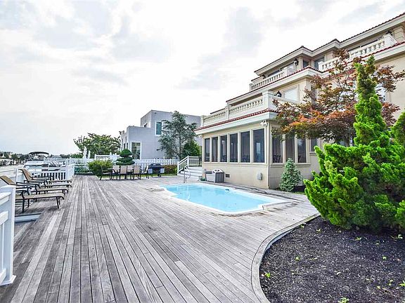 Never on the market before! Waterfront home situated on large lot with incredible water frontage and water views everywhere you turn! Completely remodeled and designed with amazing custom details throughout by expert and professional John Regina Builders just 9 years ago. You'll love the massive outdoor living space with an expansive deck, an in-ground heated pool, and 3 slips. The interior boasts a first floor with an open floor plan with two living areas, full dining room, gourmet kitchen with SubZero refrigerator, granite countertops, tons of counter space and center island with seating for 4, screened porch overlooking waterfront pool area, laundry room with full size washer & dryer and pantry, and attached one-car garage. The second floor features another large living area flanked on one wing by a second laundry room with another full size washer & dryer, then two master suites (one with its own sitting room and private balcony) and the other wing by two additional bedrooms. The third floor is even more impressive with even another sitting area with balcony and then two more master suites each with impressive high ceilings, each with private full balconies and private bathrooms. Unbelievable the sheer size of this home to have your entire family and friends to stay during the day or overnight because of the layout and number of bedrooms, bathrooms and living areas no one will feel ontop of each other! Not to mention the tremendous outdoor space too!