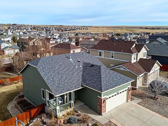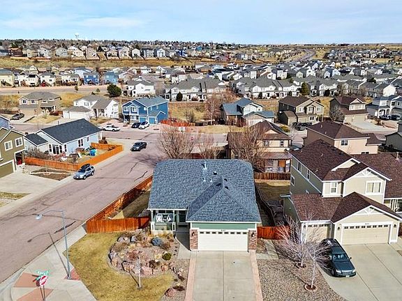 This charming home boasts a coveted corner lot position, featuring an open floor plan that seamlessly connects the large eat-in kitchen, complete with upgraded cabinets, to the inviting dining room. Step outside from the dining room onto the expansive deck, perfect for entertaining or enjoying the outdoors. The covered porch adds a touch of character, while vaulted ceilings enhance the sense of space throughout. With three bedrooms and three baths, including a master suite, there's ample room for comfort. The lower level offers a walkout, providing easy access to the outdoors. Enjoy the convenience of central air conditioning and a sprinkler system. Situated in a desirable location near parks, schools, shopping centers, Ft. Carson, and Schreiver AFB, this home is also HOA protected. Revel in the stunning mountain views and the proximity to hiking trails and the Fire Station. With two garage spaces and a prime address, this property is a perfect blend of style, functionality, and convenience.