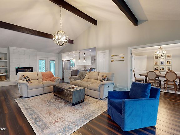 Welcome to this beautifully updated ranch nestled in the desirable Hurstbourne subdivision! Upon entering, step into the vaulted living room with gorgeous hardwood floors, exposed beams, & gas fireplace. The open kitchen features quartz countertops, updated cabinetry, a huge island, plus a new stove & dishwasher. A luxurious primary suite complete with statement wall, elegant bathroom & massive walk-in closet is a dream come true. A 2nd full bath, bedroom & sunroom completes the main floor. The finished basement includes a bedroom with egress window, another beautifully updated bathroom, media room, & plenty of space for storage. The fully fenced backyard is perfect for outdoor entertaining. Laundry hookups on both floors. Furnace & water heater have both been replaced.