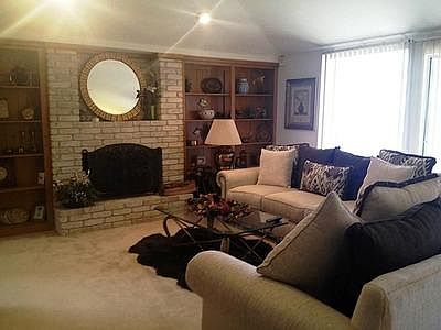 Beautiful 1 Story home with a unique floor plan.2 car garage. Granite countertop and double oven in kitchen. Living room offers a warm comfortable space with recess lights,a cozy fireplace and built-in shelves.Perfect for entertaining. Breakfast area has window with natural lighting. Spacious master bedroom has a full bath with built-in cabinets and plenty of counter space. Celing fans in every room. 3rd room can be use as an additional bedroom or office space.