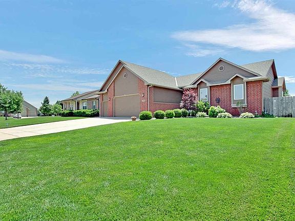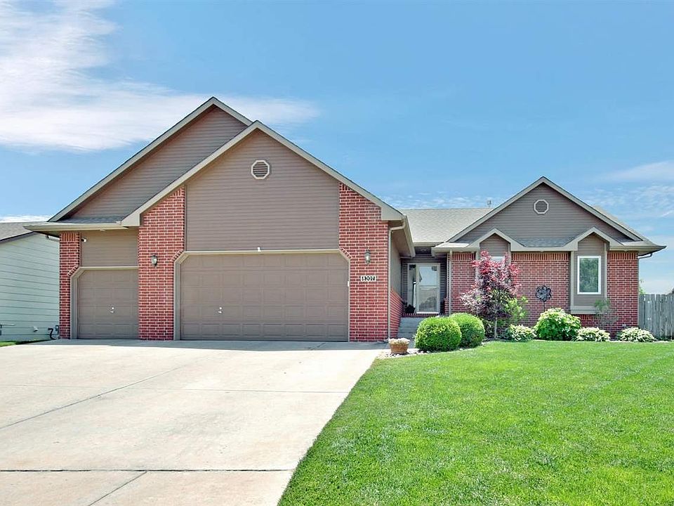 This is a rare find! Maize South schools, custom built one owner, open plan, tucked into a Tylers Landing loop, 3 car extended garage and driveway, privacy fenced yard, pride of ownership is apparent as you approach and the specials pay out in 2020. Lush lawn on sprinkler and well and an inviting front entry. Step into the living room with large window to backyard, two way fireplace, soaring vaulted ceilings, ceiling fan, decorative ledges above with lighting and fresh neutral paint. Dining has room for a hutch and bring your farmhouse table-room for that as well. Kitchen is granite and features a raised granite eating bar on island, stone back splash, under cabinet lighting, touch less faucet, NEW refrigerator and NEW dishwasher in 2018, window over designer sink and cook and prep space you will really appreciate. Laundry is on the main level and has newer luxury vinyl flooring. Master has architectural designed ceiling with ceiling fan and no problem bringing and fitting your King sized furniture. Walk in closet, whirlpool tub, double sinks and separate shower complete your master experience. Main floor also features two additional bedrooms and a full bath. Basement rec room has it all-wet bar with upper and lower bar, fireplace with hearth and mantel, view out windows, space for a home office, new paint in May and a lot of room to play and entertain in this 34 x 20 room. Three car garage was built with larger vehicles in mind and measures 31'4 x 22'10, has a battery back up on both openers, man door to backyard, built in storage and straight driveway to garages. Partially covered deck has NEW composite flooring on deck and stairs along with NEW paint on remaining deck structure. Ready for outdoor entertaining! Oversized concrete patio below will make a great play area, future fire pit or outdoor kitchen. The shed is 12 x 16 and has upper and lower storage as well as a ramp for larger mowers or toys. Location could not be better for schools, shopping and highway access. Sellers love being on this quiet loop in Tylers Landing as well as the pool, lakes and playground. Schedule your showing today!