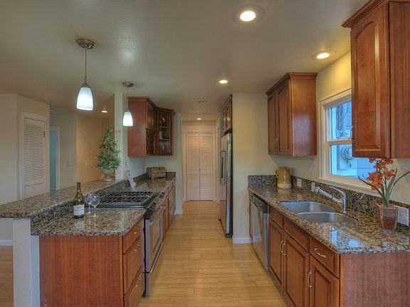 Gorgeous 3 level home with breathtaking mountain & sound views from the huge multiple sweeping balconies, rooftop and almost every room. 5 bedrooms plus den and bonus room (7 BR potential?), 4 baths, chef's kitchen w/ granite & stainless appliances, master suite with 5 piece bath & walk in closet, hardwoods throughout, fenced yd, patio, off street parking all in a wonderfully convenient location. Home was completely rebuilt in 2007. 1 year home warranty. Don't miss it! Lease purchase considered