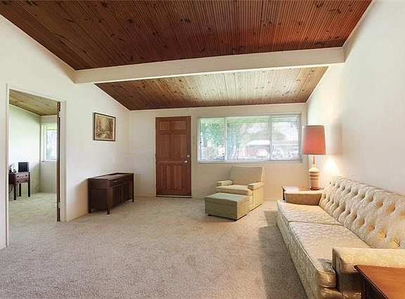 Charming, cozy, and ready for new owner. This property has tons of personality and features a spacious floor plan with plenty of renovation opportunities to make it feel like new, vaulted ceilings with wooden paneling, carpeted bedrooms, wooden cabinets in the kitchen, and a vintage Frigidaire double oven with pullout cooktop. Large, low maintenance lot with a big covered patio overlooking the rear yard with bonus shed for additional storage. Great location with quick access to surrounding amenities