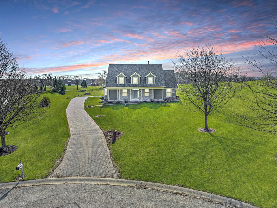 Cape Cods are the MOST charming of all - but don't mistake charming for small! Situated on 1.73 acres and a stone's throw from Thelen Park, this CUSTOM Built Beauty with 2x6 construction, Marvin LowE Windows and is MOVE-IN ready! Spacious 3,600+ square foot & room to expand - this home features a FULL BRICK paved driveway, 3 car radiant HEATED garage and the classic stairs from Garage to Basement & potentially, first floor to Attic. The SUNROOM might also be your Favorite room - the perfect place to Dine, Wine or Chill. Clear Maple HARDWOOD floors throughout the first AND second floor, Separate Dining Room with FLEXIBLE space to expand as you need and your new Schonbek Chandelier. Generous living room features a Gas-Start Wood burning STONE Fireplace - perfect for gathering. The COOK'S Kitchen features custom Legacy Cabinetry, including glass doors and an oversized island. Loads of can lights, over cabinet lighting & all the extras. FIRST-FLOOR primary bedroom suite includes a walk-in closet and a luxury en-suite bathroom with a SANI JET tub, separate shower, and DUAL Alder vanities with Marble tops. The Suite also features access to the backyard patio. Additionally, the first floor also accommodates a well-sized office/study room, Mud room/drop zone and powder bathroom. The second floor offers two additional bedrooms, a full bathroom, and a HUGE bonus room. Sellers were going to build a staircase leading up to the additional attic space turning that into another living quarter never got the chance to! Furthermore, the 2,000 square foot unfinished basement is roughed in for an additional bathroom. NEW ROOF in 2022. Just a hop, skip to Spring Grove Elementary & Horse Fair Park and local shopping. Only 10 minutes to Fox Lake METRA Train & 20 minutes away from Lake Geneva Summer Fun!