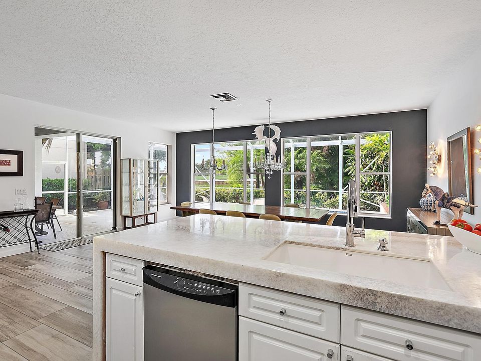 Overlooking the 9th green of the BRAND NEW Nicklaus-designed Heritage Course at the award-winning Club at Ibis this 3BR/3BA+Den+ Loft offers a pool, magnificent views and a very desirable location, just steps from the Club. With more than 2500 square feet, this modernized and spacious home boasts one of the closest locations to Ibis's world-class amenities--less than 1000 feet! Enjoy a screened patio with heated pool, overlooking picturesque water and golf vistas Ibis is famous for. The first floor features new flooring throughout, a renovated kitchen with dramatic quartz waterfall edge countertops and upgraded appliances, an office, and powder room. Upstairs, the three bedrooms, including the oversized Primary Suite. There is also a loft space which offers extra space for living or working. Enjoy soaring ceilings, a versatile floor plan, and an incredible location in Ibis. The Club at Ibis is an award-winning community that boasts a 90,000 sq. ft. clubhouse, three 18-hole Nicklaus-family Championship golf courses, five restaurants, a world-class fitness complex and spa, and incredible tennis and pickleball facility.