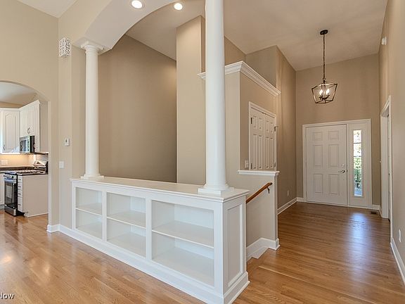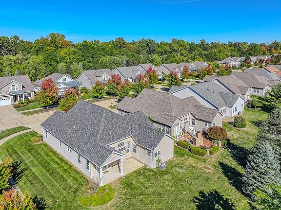 Welcome home to 8208 Manor Gate Way in the coveted Newell Creek community of Mentor—an elegant, fully remodeled three-bedroom ranch offering true one-floor living, a full basement, and inviting covered porches at both the front entry and rear patio. Inside, soaring ceilings and a gracious foyer set a refined tone that opens to an expansive great room anchored by a gas fireplace and a custom built-in window wall that floods the space with natural light. The adjacent eat-in kitchen/dinette has been thoroughly updated and styled for everyday comfort and entertaining alike, featuring new stainless appliances (2025), granite-style surfaces, and French doors that extend the living area to the covered rear patio. Thoughtful main-level conveniences include a first-floor laundry and a private primary suite with a walk-in closet and a beautifully refreshed bath showcasing a double vanity, walk-in shower with vinyl surround, a ceramic-lined soaking tub, and ceramic tile flooring. Two additional bedrooms share a second full bath with matching ceramic finishes. Below, an oversized basement (~1,900 sq. ft.) delivers exceptional flexibility for recreation, fitness, or hobby spaces and is pre-plumbed for a third bath, enabling a seamless future expansion. Recent capital improvements provide peace of mind: new roof (2025); new furnace and air conditioner (2023); new hot water tank (2023); new light fixtures and electrical outlets (2025); refinished hardwood floors throughout the main level; and fresh interior paint for a move-in-ready presentation. Residents of Newell Creek enjoy resort-style amenities—pool, clubhouse, playground, walking trails, and scenic ponds—together with a central location close to shopping, dining, parks, and major freeways for effortless commuting. A rare opportunity to acquire a meticulously updated ranch in one of Mentor’s most desirable neighborhoods, this home blends modern comfort, timeless finishes, and exceptional community living.
