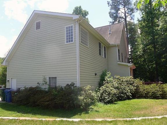 Louise Beck Property Management Available both short and long term. This home is in Eagles Point, minutes to I40, Durham, and Chapel Hill. Walk to the shops and restaurants of Southpoint. Soaring ceilings, abundant windows for natural light highlight this transitional with over 2300 sq ft. A covered front porch welcomes you to this home. The entry foyer with hardwoods is flanked by the formal living room and dining room. The living room is entered through French doors and has a ceiling fan and carpet. This room could also be used as an office or study. The dining room has hardwood floors. The two story family room is open to the stair landing on the second level and the fourth bedroom. This spacious room has carpet and includes a gas fireplace, ceiling fan and large windows overlooking the deck and yard. The family room is open to the breakfast room and to the kitchen over a raised breakfast counter. The kitchen has plenty of cabinet space, a built-in desk area and all appliances included. A sunny breakfast area looks out onto the back yard. There is a large pantry closet just off of the kitchen. The utility room includes a washer and dryer. There is a half bath on the main level. All of the bedrooms are on the second. The master bedroom features a contoured trey ceiling, hardwood floors, a ceiling fan and a luxury bathroom. The tile master bathroom includes a garden soaking tub, dual vanity, separate glass and tile shower and a large walk-in closet. The remaining bedrooms all have carpet, one bedroom has window cut outs open to the family room below. This room could also be used as a loft office or playroom. A deck spans the back of the house. This home has an attached two car garage. There is a security system available, any hook-up, service and monitoring fees are not included. Managed by Louise Beck Properties