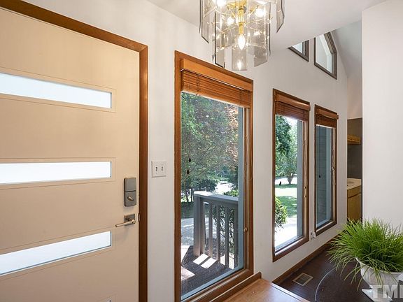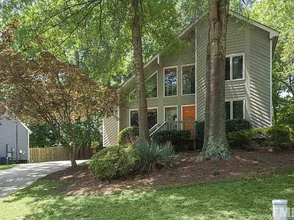 What an opportunity to find a mid century modern home in N. Raleigh! Nestled on a cul de sac minutes from I540, shopping and entertainment. Offering a highly desired 1st floor bedroom with full bath, an updated kitchen with granite, a family room offering a "mountain house" view experience. The upgraded fireplace and new bamboo HW floors entice anyone. Not to mention the wet bar! Walk out into the serene double screened porches overlooking the fenced backyard ready to enjoy the fire pit with friends!