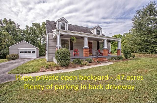 Looking for a HUGE backyard for football, soccer, or just down right fun and games. Here it is. This darling cape is sited on an almost HALF-ACRE level lot with a tree-lined view. The backyard is truly PRIVATE and SERENE. Plus no worries about parking, there's a GARAGE and plenty more parking in back driveway with great turn around space. This home welcomes you with a charming front AND back PORCH. The perfect spot to watch the world go by. The interior is bright and sunny and also has a great floor plan with 1400 sq ft, 4 bedrooms (2 up and 2 down), RENOVATED full bath and HARDWOOD floors throughout most of the 1st floor. The living room and dining room are open and flow to the kitchen with access to the back porch. The kitchen is cheery and overlooks the private yard. With Target, Kroger, Zaxby's, Chipotle & more just 2 blocks away, everyday living is super easy. Hungary Creek Recreation Association is also down the street for sun and fun in the pool next summer. Roof, Heat Pump & Water Heater @ 2006. This home is a must see and offers so much for under $175,000.