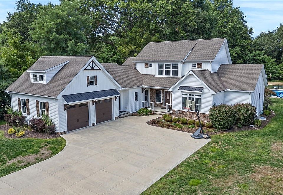 Don't miss this rare opportunity to own a serene 1-acre lot backing up to Veterans Park in Mentor! This custom-built, one-of-a-kind home is open and airy, featuring 10-foot ceilings, cathedral accents, and expansive windows that fill the space with natural light.
