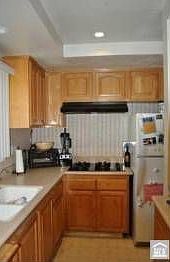 Remodeled Kitchen with Beautiful Cupboards, Designer Counter Tops, Includes Refrigerator, Stacking Washer/Dryer. Crown Moldings, Downstairs with Hardwood Floors, Upstairs Wall to Wall Carpet. Forced Air Heat Central Air, Tiled Patio Leads to Carport, French Doors in Master Lead to Balcony. Lots of Guest Parking, Wonderful Location-Close to Library, Shopping, Schools, Post Office & Freeways.
