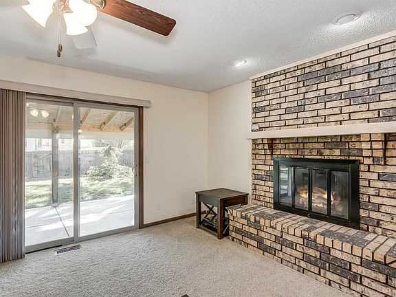 Just move in and enjoy! This incredibly well-maintained home in a great location in west Wichita features awesome family living spaces, large rooms and a spectacular covered backyard patio. The full brick front is striking with the gorgeous mature trees as the perfect background. The spacious living room features a beautiful floor-to-ceiling brick-faced fireplace, and large sliding door that provides great natural light and leads to the huge covered patio area. The open kitchen and dining areas feature stunning wood laminate floors and have wonderful space for family gatherings. The dining room has large double windows and is open to the kitchen and eating bar area. The kitchen features great cabinet and counter space, all appliances â refrigerator, newer oven/5-burner range, microwave, newer dishwasher - and a window over the sink. The master suite includes a spacious bedroom and large closet, a private master bathroom with a walk-in shower and oversized vanity, and even a unique built-in turn storage for a few countertop items. The main floor also includes two additional bedrooms with good closet storage and a second full bathroom with a tub/shower and vinyl flooring. The finished basement features fabulous space with a huge family and recreation room including a floor-to-ceiling stone fireplace and built-in bookcases and shelves â the perfect space for media viewing and game tables. The basement also includes a third bathroom with a walk-in shower, oversized vanity, and laminate flooring, and two additional finished rooms with concrete floors â one of the rooms includes a laundry area and lots of space that could be used for a hobby area or game area, and the other room would make a great workshop or craft room with lots of shelving and counter space. Additional interior features include intercom system and security system and exterior features include newer roof, fiber-cement siding, spacious and beautiful covered patio, south-facing backyard, sprinkler system, irrigation well, and manicured lawn and landscaping. This wonderful home has so much to offer with awesome indoor and outdoor living areas to enjoy with your family and friends!