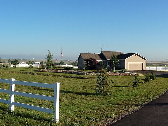 3 fenced acres. Fantastic view of rocky mountains. Separate 4 car garage with shop. New landscaping, garden, beautiful composite deck, paved drive. Shop is a finished video and webcasting / recording studio with heat and ac. Home is a ranch style with a full basement. Large Master is on main floor with full bathroom. His and hers sinks, shower, walk in closet. 2nd bedroom on main floor with full bathroom. Beautiful kitchen custom tile floors, very open. All stainless appliances. Gas fireplace in main living room area. Open design. Laundry room and mud room with oversized 2 car attached garage with steel shelving that stays with the house. air and heating. System has UV filters, and heppa filters for super clean air. Water is from well, house system has all the bells and whistles. Filters, UV water filter, and a RO system. Basement is finished. 2 bedrooms with a full bath and large living area. A professional pool table in the game room stays with the house. Ping Pong table top, darts, a hidden area under the stains for games etc. Workout room with extra storage shelves. Very large septic system. Fenced garden and a large chicken coop that has never been used are all ready to go. There is a outdoor fire pit for evening bonfires. This property is zoned agricultural so the taxes are low! There is even a 25 yard gun range on the property. If you have horses or just want a small hobby farm this is the place. We will even leave new Husqvarna riding mower, snow plow blade and pull behind aerator. I am using a flat fee realtor, and have a cap of 2% commission to buyers agent. Freshly painted outside and inside. No sales calls of any kind.