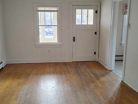 This charming 2-bedroom, 1-bath home offers 844 sqft of living space. It features hardwood floors, a refrigerator, range/oven, and laundry hookups for added convenience. The home is heated with baseboard heat, and street parking is available. Enjoy privacy in the fenced backyard. Tenant is responsible for yard maintenance and sidewalk snow removal. NO PETS. One year lease required. Tenant is responsible for electric and security deposit. Background, credit check and proof of employment required. Completed application required to view property. $800/month.